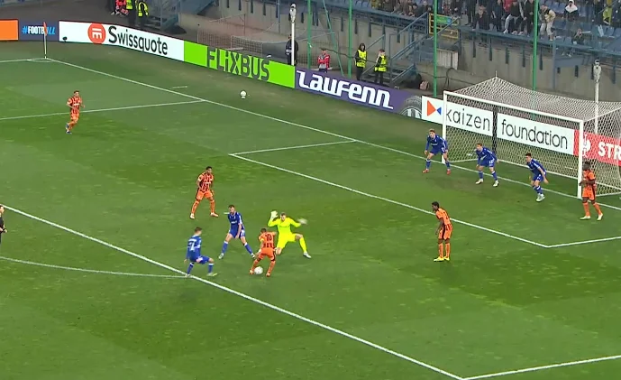 Поляки включили режим Барселоны-2009, развалив оборону Шахтера фантастической комбинацией с передачей пяткой и диагональю в правый край штрафной. Атака завершилась четырьмя ударами из пределов штрафной – выстрел свежего Перейры парировал Ризнык, добивание от Козубаля и Исака успели накрыть, а еще одно добивание Козубаля прошло мимо ворот.