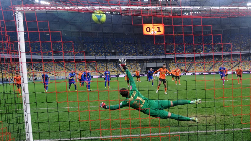 В заключительной части первого тайма "горняки" таки вернули контроль над игрой. Львов начал садиться очень низко, но долгое время команда держалась. В какой-то момент хозяева сбились на дальние удары, большинство из которых спокойно накрыли защитники. Впрочем, на флангах было не столь спокойно: на 36-й минуте Тете ворвался на правый край штрафной и закрутил мяч мимо девятки, а на 45-й Мудрик обыгрался с Корниенко, влетел на левый край и получил по ногам от Романчука – пенальти! Тете уверенно его реализовал. 1:1.