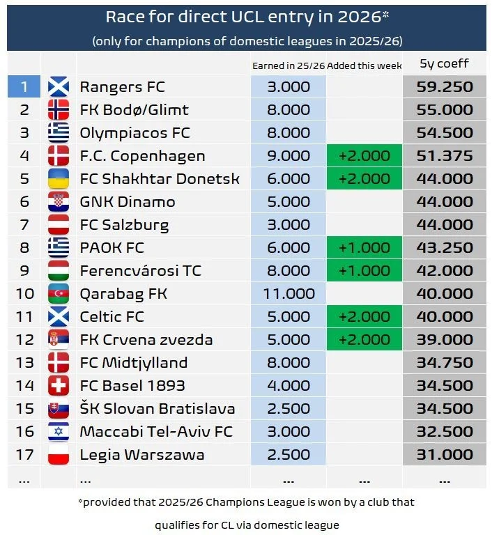 Украинский клуб поднялся сразу на три позиции, обогнав Динамо Загреб, Зальцбург и ПАОК. Такой рывок значительно повышает шансы "горняков" на прямую путевку в основной этап Лиги чемпионов сезона 2026/27, если они станут чемпионами Украины.