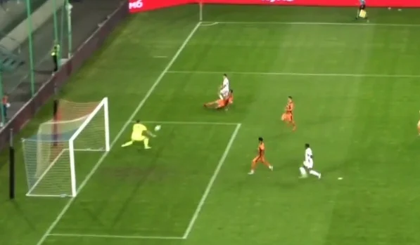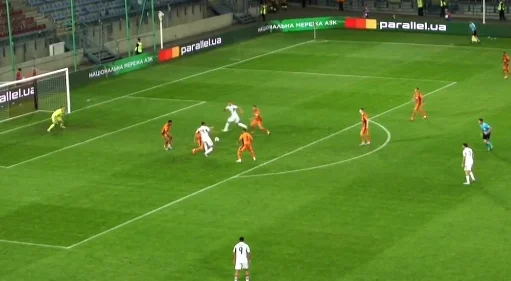 На 68-й минуте Очеретько вколотил метров с 25-ти в правый нижний. Мяч прошел рядом со стойкой.