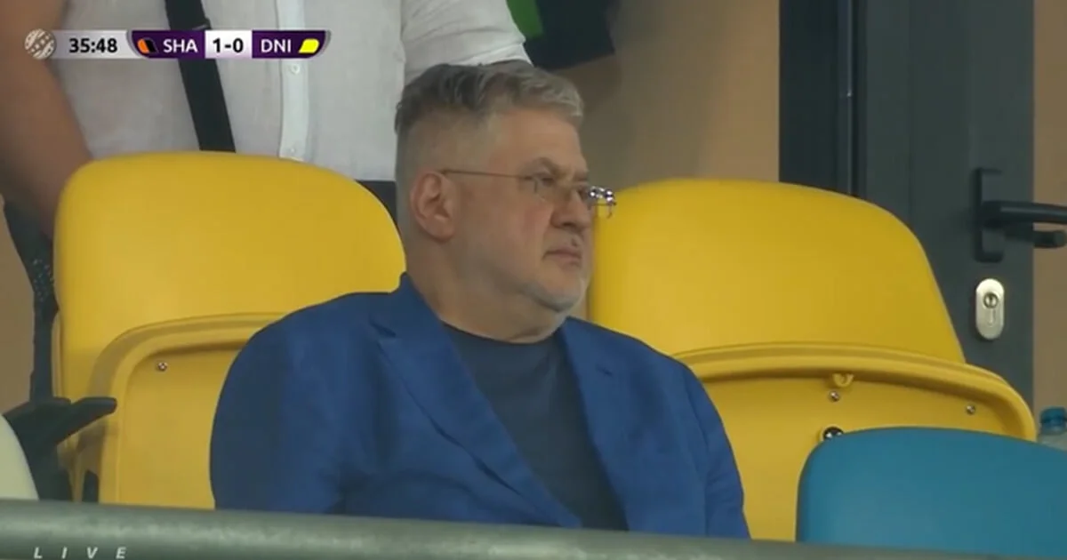 Во время матча между Шахтером и СК Днепр-1 камеры зафиксировали на трибунах одиозного экс-президента Днепра, бизнесмена Игоря Коломойского.