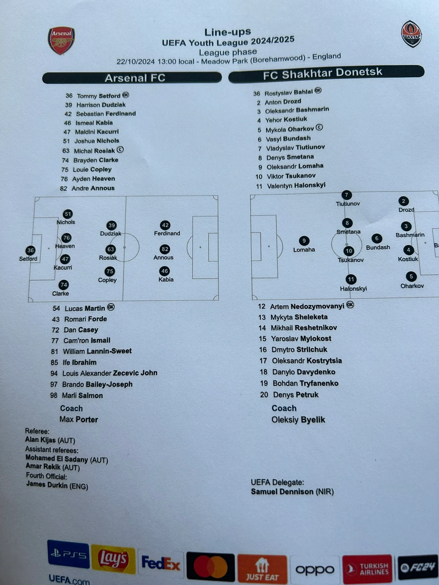 Юношеская лига УЕФА U-19: Арсенал –Шахтер – результат и обзор матча 22.10.2024