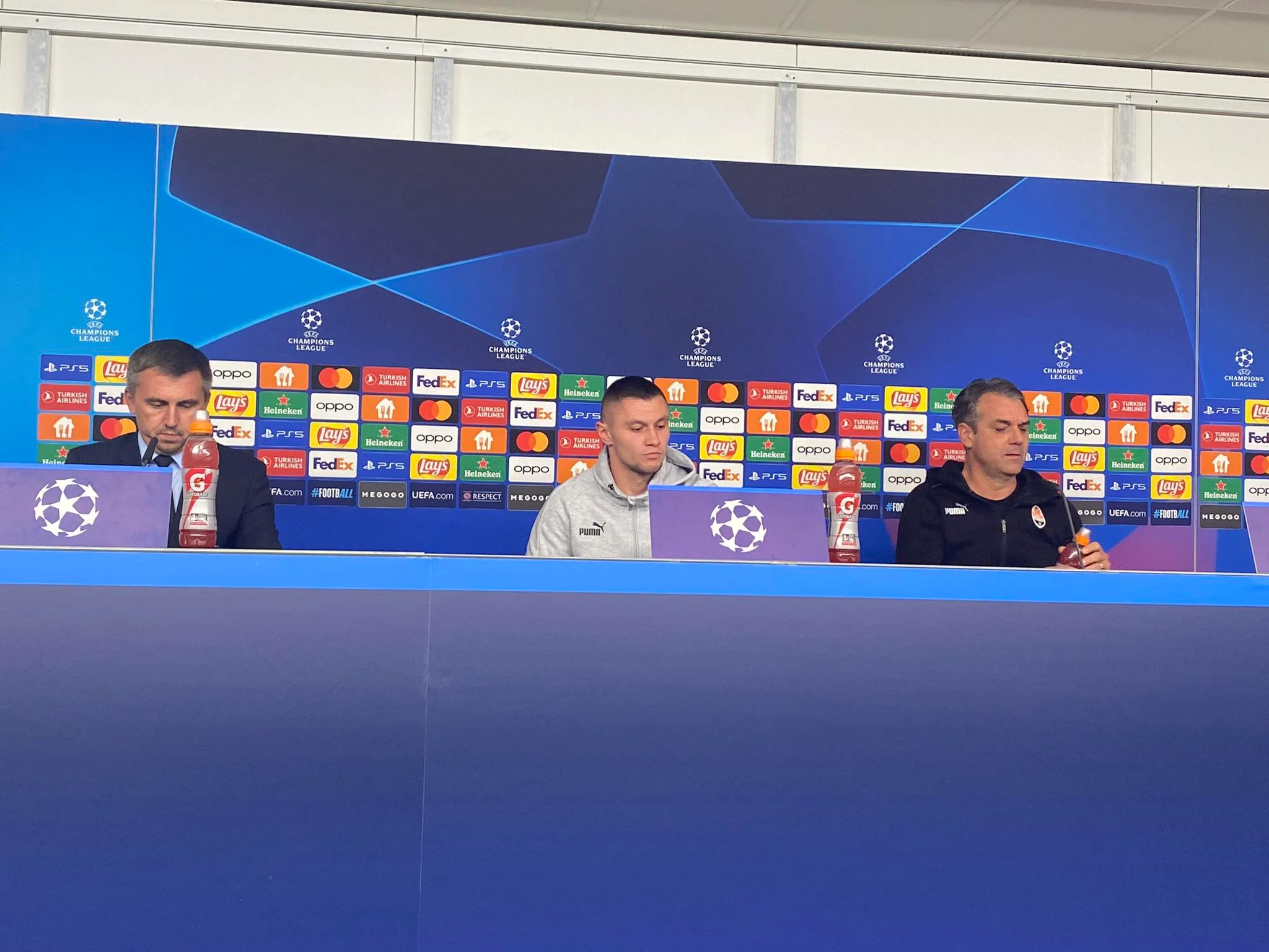 От отеля до стадиона Шахтер ехал примерно 40 минут. Пресс-конференция Пушича и Зубкова началась по плану. Следует отметить, что между тренером и игроком очень теплые отношения. Марино и Александр шутили друг с другом. Это свидетельствует о том, что команда нашла понимание с новым наставником.