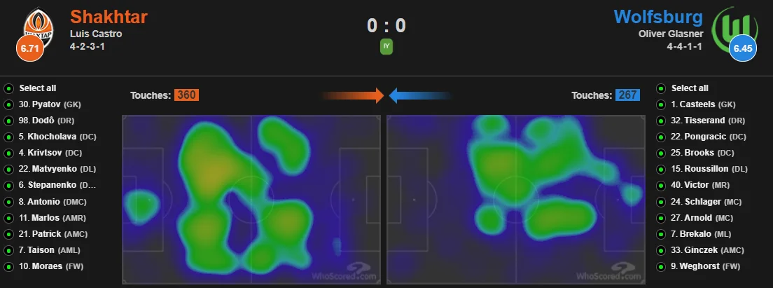 Если Шахтер создал 4 больших голевых момента, то у Вольфсбурга были только одна 100-процентная попытка. В пределах штрафной "горняки" били 12 раз, "волки" – лишь 4. Как будто это команде Каштру нужно было отыгрывать домашнее поражение 1:2. Даже в дальних передачах, на которые необычно часто приходилось полагаться (61 лонгболл, только трижды в сезоне было больше) дончане оказались эффективнее. Выиграли на 12 единоборств больше, хотя проиграли в воздухе и отборе.