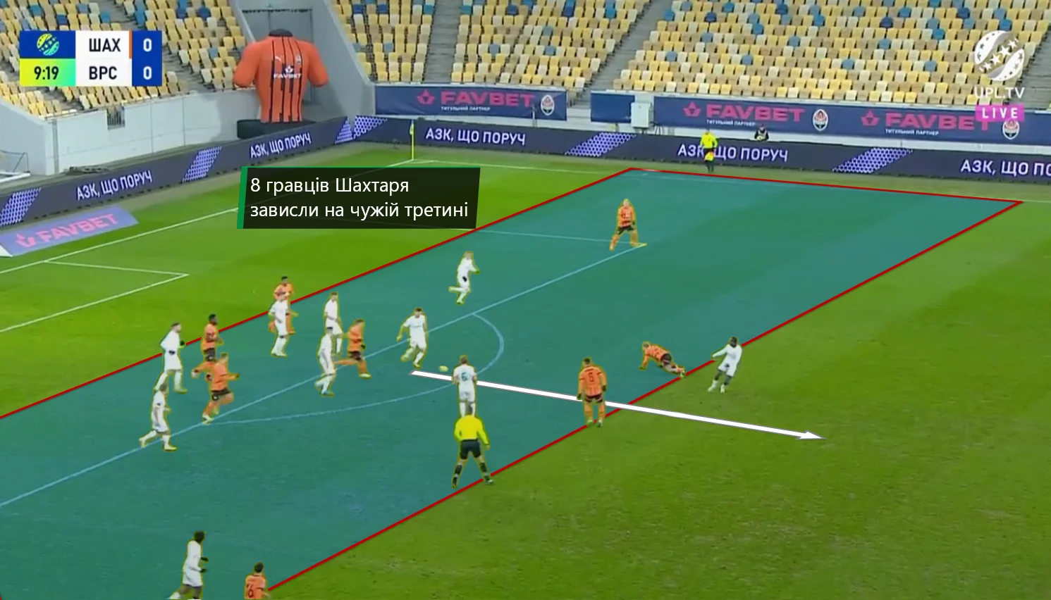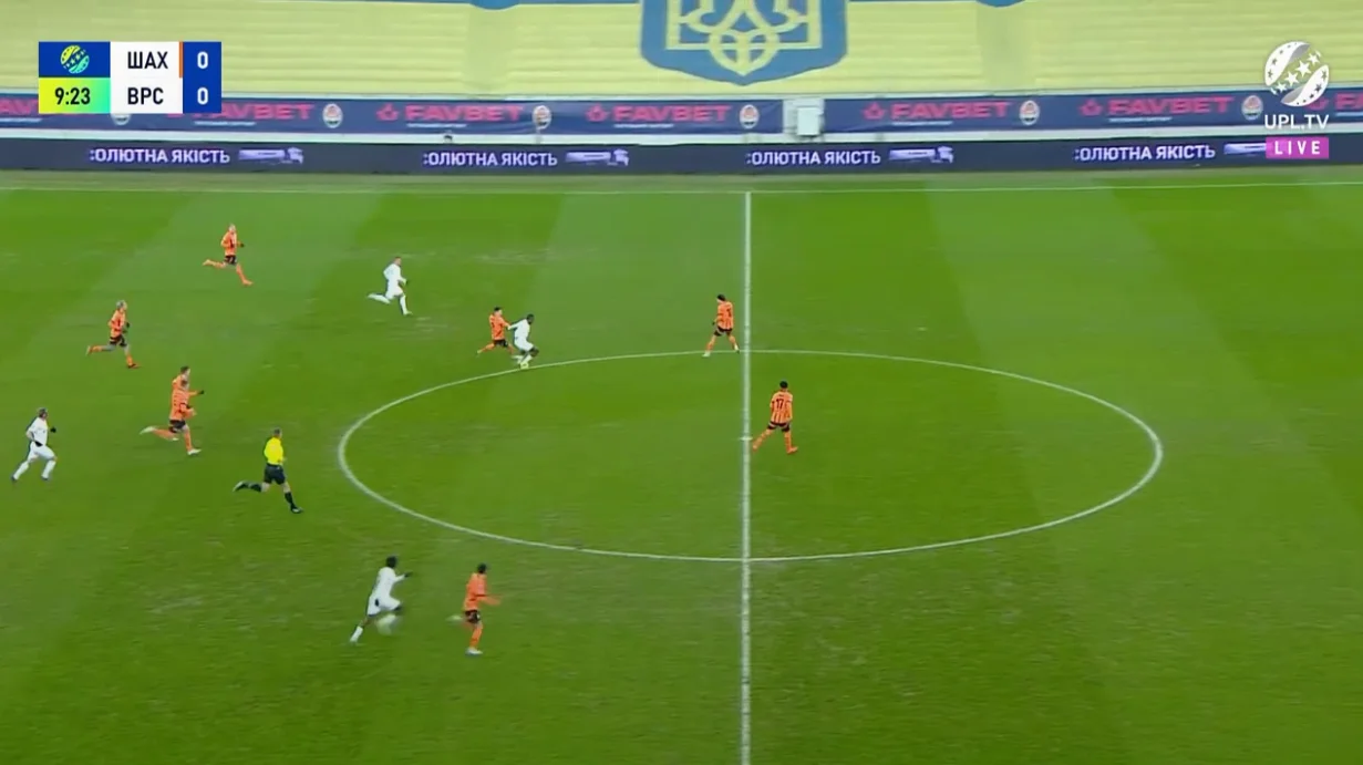 Шахтер возвращал мяч еще на трети поля Ворсклы, моментально перезагружая свои атаки. Нулевая угроза со стороны соперника в первые 20 минут позволила Шахтеру действовать максимально нагло, без страха поднимая к чужой штрафной обоих фулбеков и опорника.