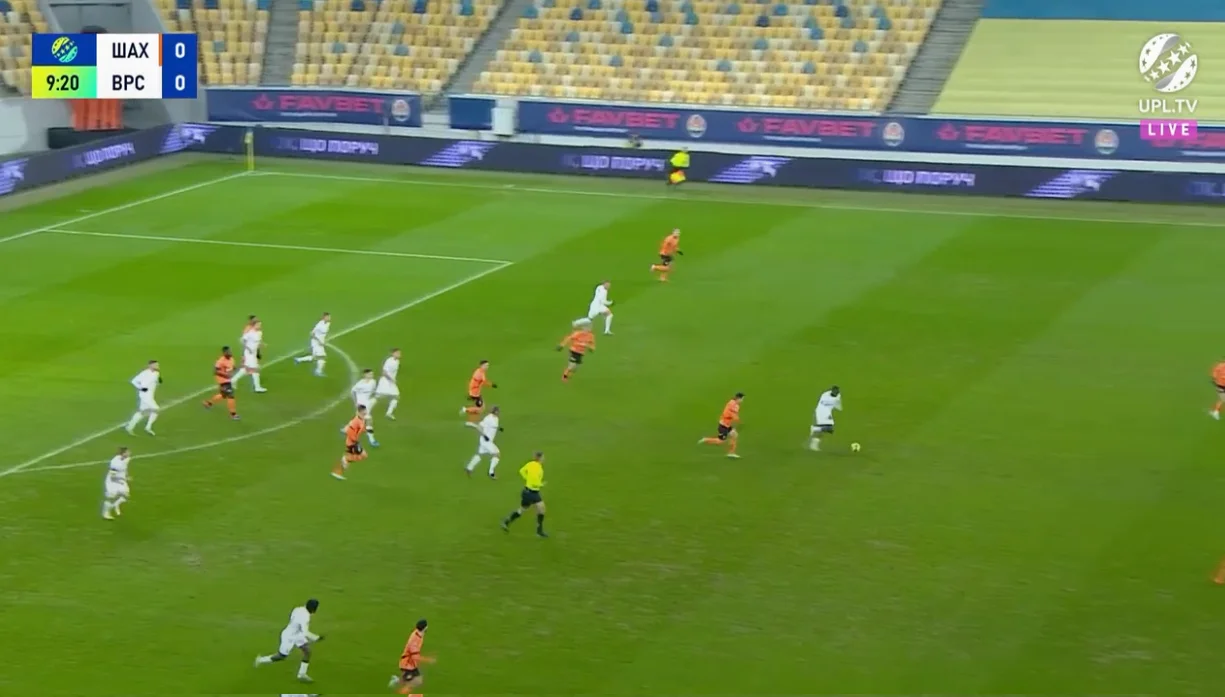 Потери мяча со стороны дончан в такой ситуации могли бы вылиться в убийственные контратаки. Именно так "горнякам" забивали Александрия, Верес и ряд других клубов. Ворскла однажды тоже выбежала, но Иеде не хватало поддержки, а потом он запорол передачу.
