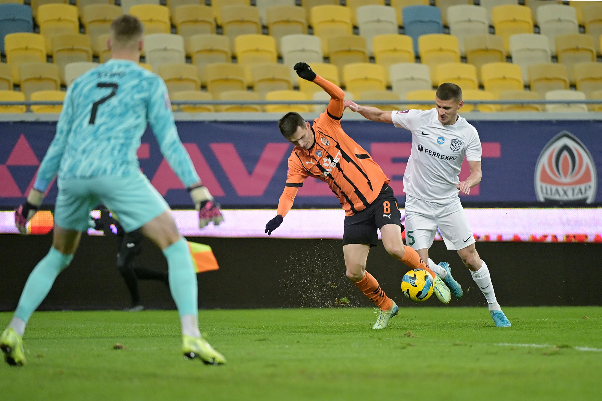 При таком футболе конец был немного предсказуемым. Первый гол дончане провели уже на 14-й минуте в результате удара Крыськива с окраин штрафной площадки. Мяч срикошетил от Гучека и Невертона, а Исенко уже лежа отбил мяч ногой. Получилось только подбросить сферу под добивание Невертону – 1:0.