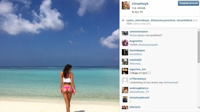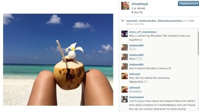 Невеста Криштиану Роналду - супермодель Ирина Шейк - не стала прерывать отпуск в тропиках ради церемонии вручения "Золотого мяча".
