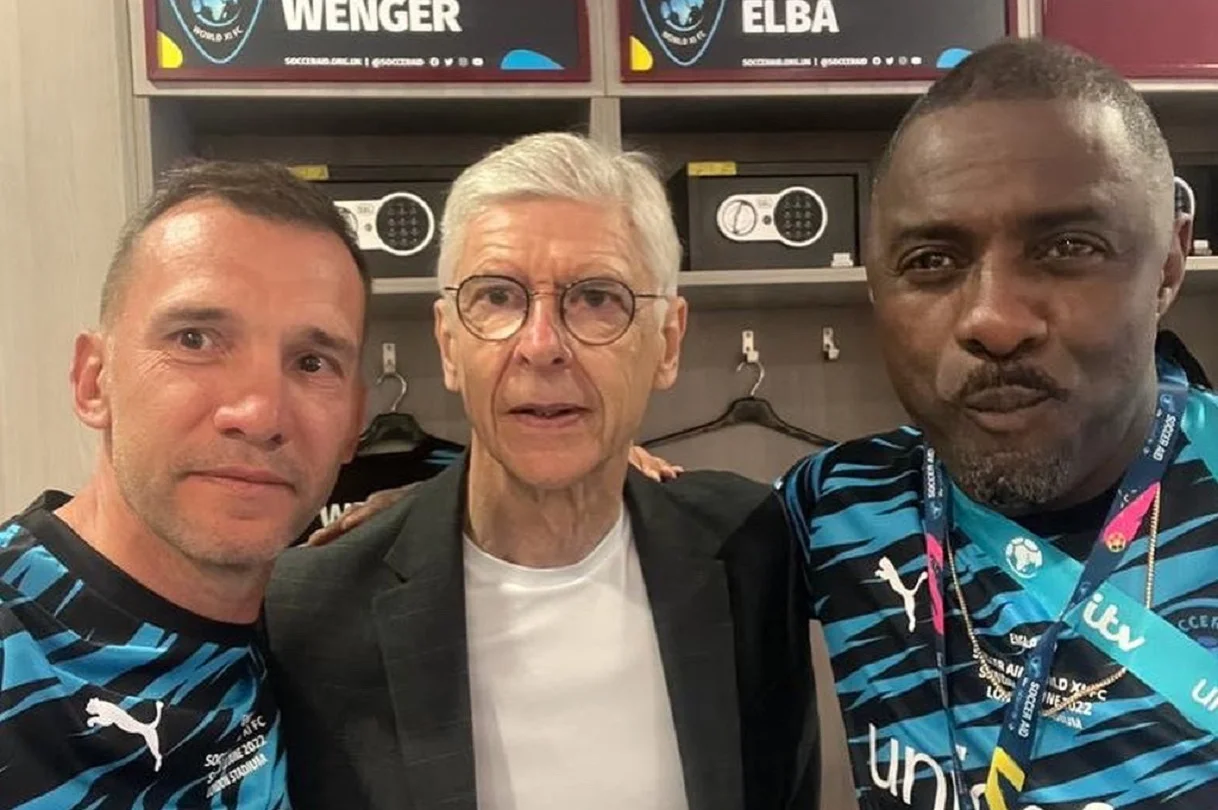 Шевченко с Арсеном Венгером и актером Идрисом Эльбой / Фото из соцсетей