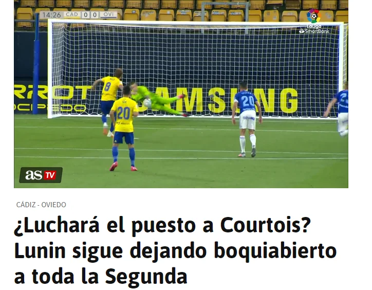Han perdido en casa del Cádiz (actual líder), pero si el Oviedo se salva, gran parte de la culpa la tiene Lunin. Hoy a vuelto a parar un penalti y ya van 3.
