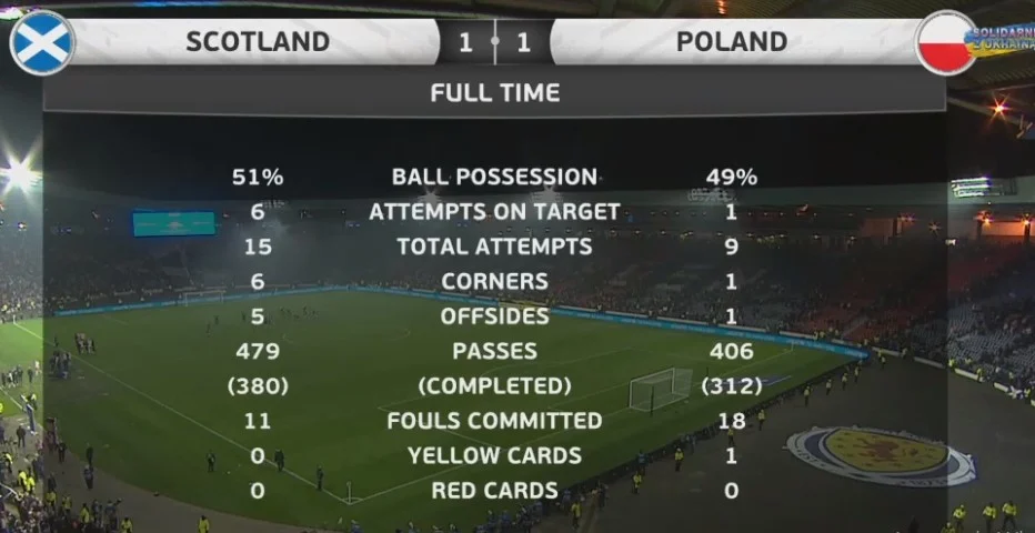 Около 40 тысяч зрителей на матче официально. Это означает примерно 400 тысяч фунтов финансовой помощи для Украины, ведь именно о таком проценте от прибыли от продажи билетов договорились капитаны обеих сборных (Робертсон и Глик), а также федерации. На последних секундах компенсированного времени Пьонтек заставил сфолить против себя в штрафной. Нападающий Фиорентины реализовал пенальти последним ударом в матче. Так оборвалась 7 подряд победа Шотландии и шестая без пропущенных голов, что стало не слишком справедливым итогом этого контрольного матча. Польша вправе чувствовать тревогу перед финалом плей-офф за выход на Чемпионат мира 2022 года. Да, приберегли Левандовски, но ведь соперник Украины слишком сильно доминировал во всех фазах игры.