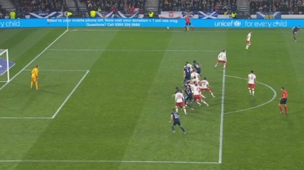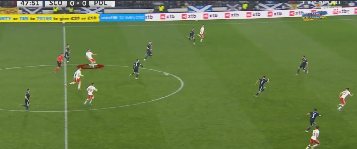 Милик получил травму. На 25-й минуте центрфорварда заменил Пьонтек. Левандовски все так же на скамейке запасных, так как испытывает незначительные проблемы со здоровьем. Макгинн просто блестяще ведет всю игру впереди. Хавбек Астон Виллы отдал пас чуть ли не под каждый удар шотландцев в первые 35 минут. Адамсу не удалось прошить Скорупски. Безумная волна атак от Шотландии. Один Патерсон передает привет Лэмпарду, дважды подряд пробивая в створ ворот – удивительно остро у чужих ворот и надежно вблизи своих играет этот правый защитник. Добивание за добиванием, героизм польского вратаря, блок защитников окончательно тушит пожар.