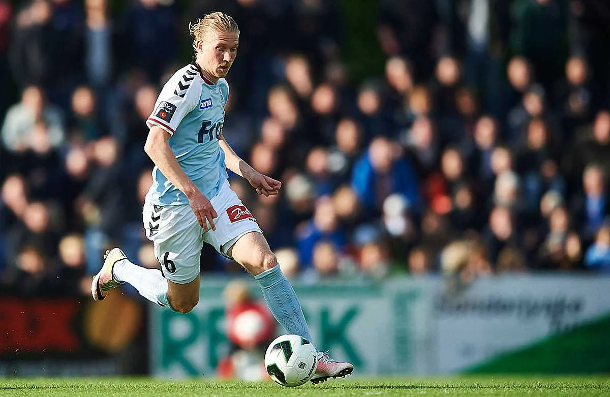 Шведский полузащитник "Сеннерлюска" Симон Кроон помог своей команде обыграть "Оденсе" в чемпионате Дании красивым голом пяткой.
