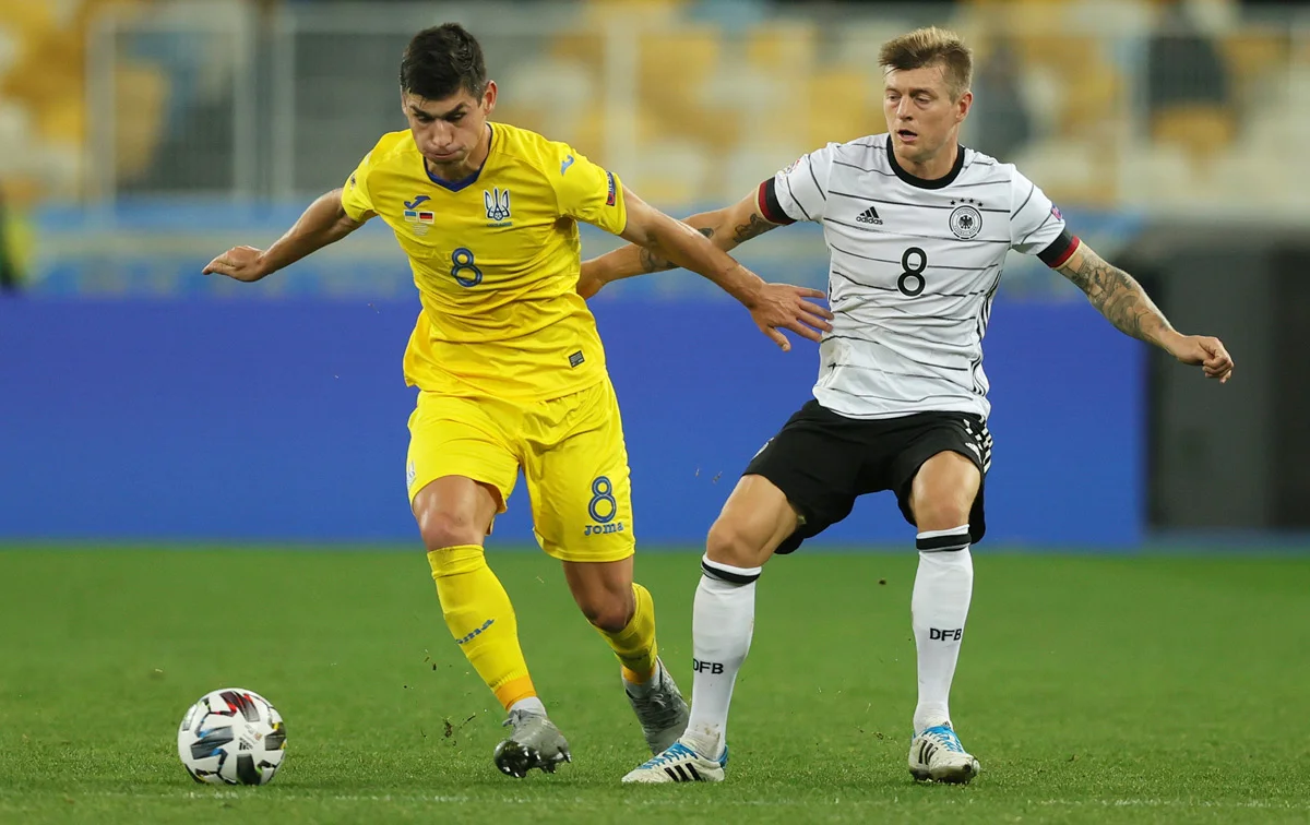 Впрочем, при всех своих достоинствах Украина проиграла три из четырех матчей против грандов, в то время как Швейцария набрала с ними пять очков. "Сине-жёлтым" не хватает качества в деталях – индивидуальный класс и опыт исполнителей часто портит все интересные задумки тренерского штаба. Тот же гол немцев, который списали на Зинченко на чужой половине поля, начался со структурной ошибки – Зубков не дал ширину (хотя мог), а Степаненко страховал Коноплю, который поднялся по флангу. Как следствие, за обрезкой возник безумный разрыв, а тягаться с топами в скорости и исполнении нам не с руки.