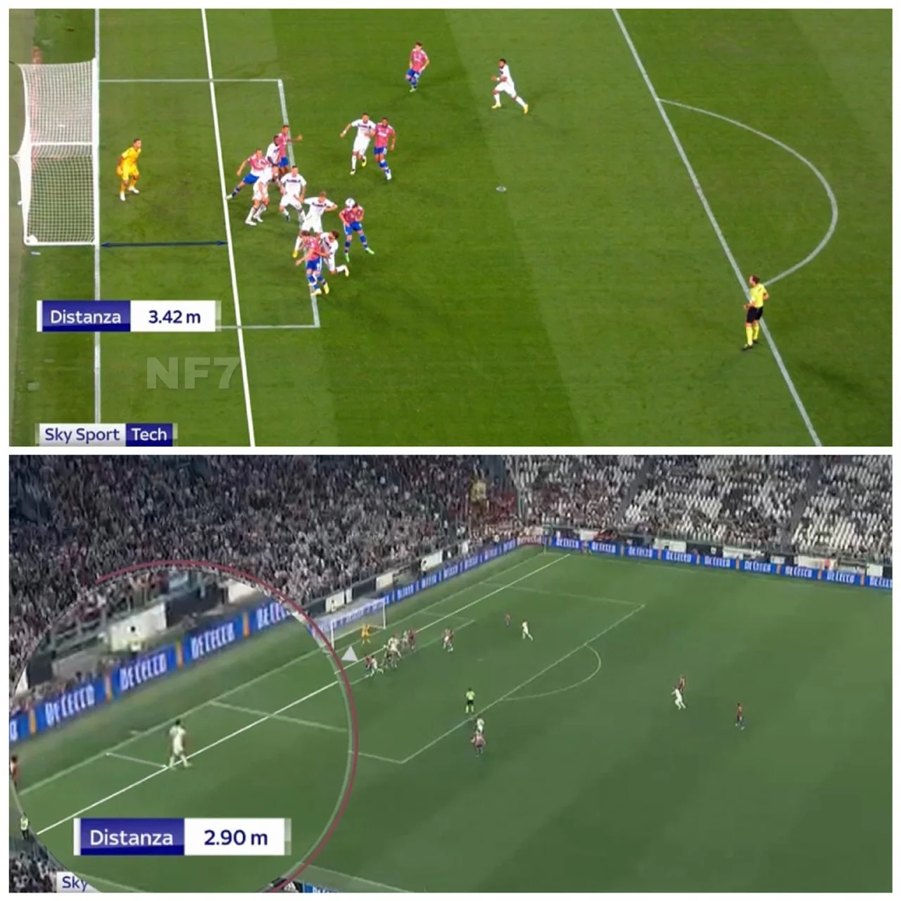 Милик на 90+5, казалось, забил победный мяч и даже на радостях получил вторую желтую за снятую футболку. Далее произошло масштабное столкновение, после которого удалили еще Куадрадо, Фасио и Аллегри. Гол Милика посмотрели на VAR и отменили, однако Sky Sports уверяет, что такое решение было ошибочным (смотреть фото ниже). Серия А пока отрицает ошибку.
