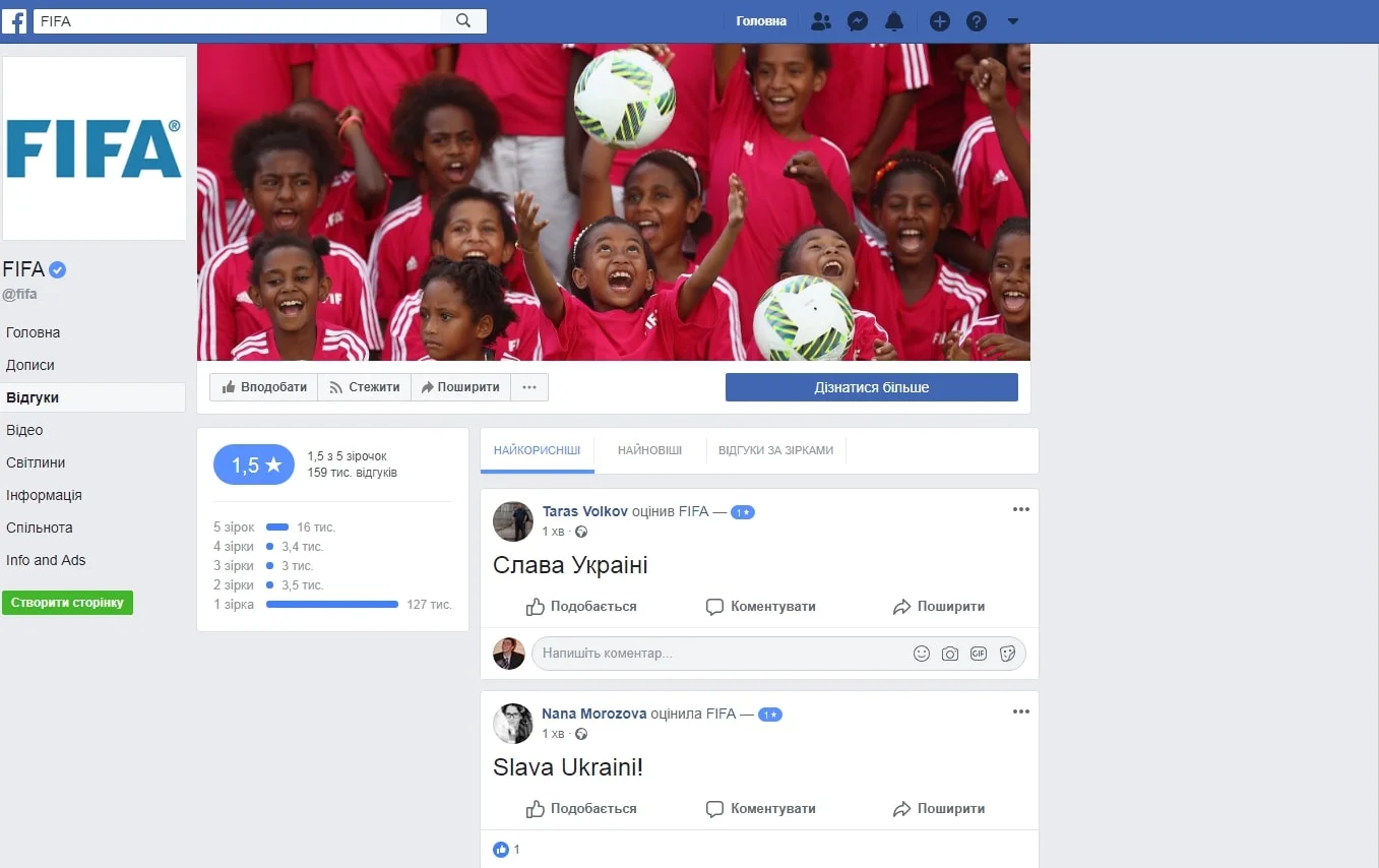 "Слава Украине!" – украинцы запустили флэшмоб и обвалили рейтинг страницы ФИФА в Facebook