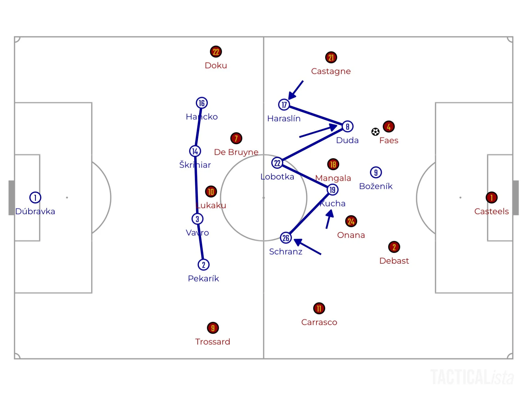 Доменико Тедеско провел смену поколений и привез на турнир менее звездную, но более быструю команду. Впрочем, рисунок игры сегодня определяли не бельгийцы, а скромная Словакия, которую называют маленькой копией Наполи с Лоботкой в центре поля. Франческо Кальцона даже успел потренировать Наполи в этом сезоне.