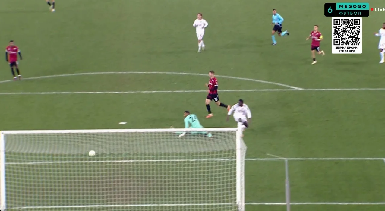 Очень интересный персонаж у Шкендии впереди. Бесарт Ибраими когда-то переходил за 450 тысяч евро в Шальке, после чего бесплатно перебрался в украинский Крым. В активе 39-летнего македонца выступления за Севастополь и Таврию, а также запорожский Металлург. Сегодня Ибраими едва не положил шедевр, накрутив 3-4 соперников – не попал лишь в дальний левый угол.