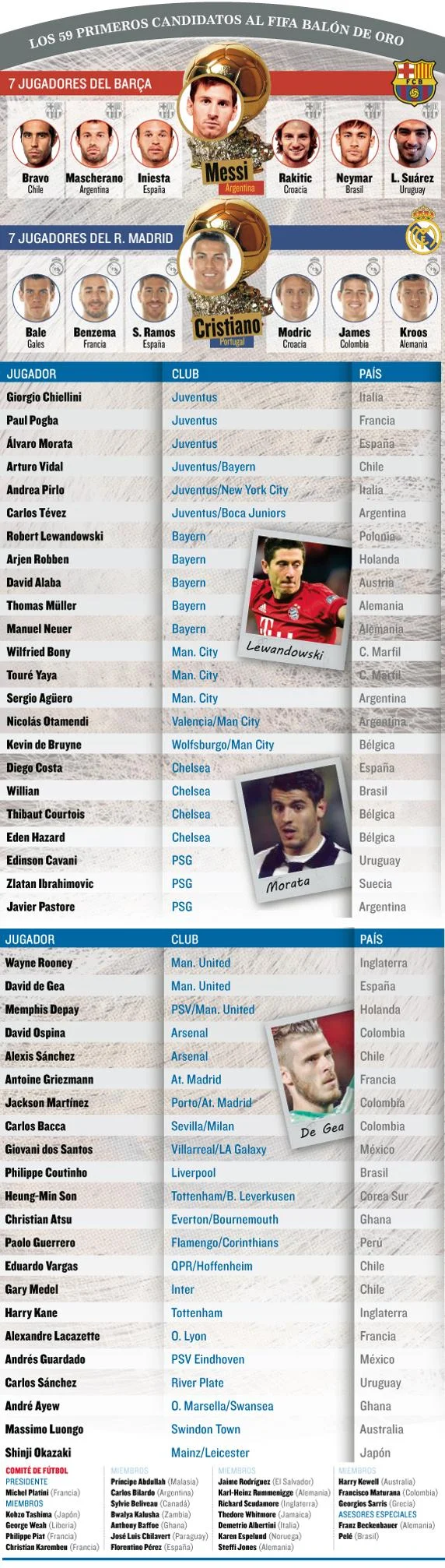 Комитет ФИФА выберет из этого списка 23 футболиста. Тройка финалистов будет выбрана журналистами, тренерами и капитанами национальных сборных. Вручение премии состоится 11 января 2016 года.