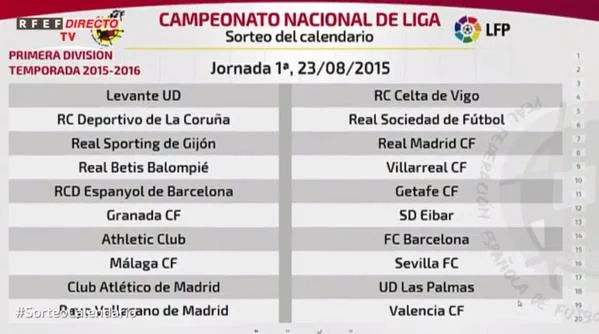 Ла Лига опубликовала календарь матчей чемпионата Испании сезона 2015/16.