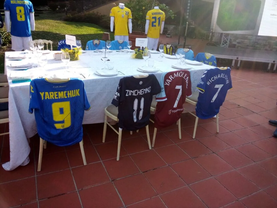 Во время благотворительного ужина выступали 9-летняя девочка, потерявшая дедушку на войне, украинский ансамбль народного танца и певец Альфонсо Оливера. Главной целью было собрать средства для помощи Украине благодаря продаже футболок с автографами звезд футбола: Малиновского, Зинченко, Миколенко, Ярмоленко, де Брюйне, Фернандинью и других. В общей сложности Руслан и Роксана собрали 42 171 евро.