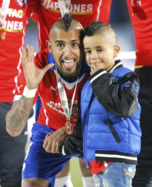 У ребенка лидера сборной Чили Артуро Видаля такая же странная прическа, как и у отца.