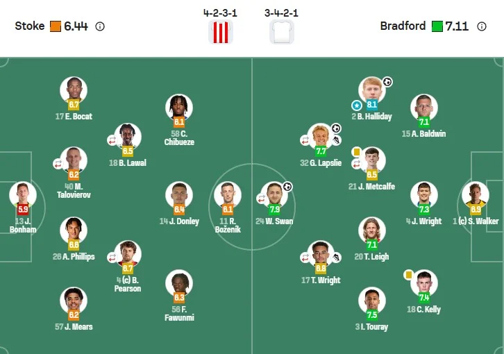 Статистический портал Sofascore оценил выступление украинского легионера в 6,2 балла. Такую же оценку получил правый защитник Стока Джейден Мирс, но это не худшие цифры среди "гончаров". Ниже оценили Роберта Боженика (6,1), Чиносо Чибуэзе (6,1) и вратаря Стока Джека Бонхэма (5,9). А лучшим игроком матча стал Брэд Халлидей (8,1).