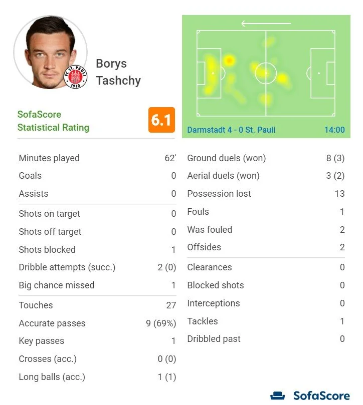 Матч против Дармштадта стал для Санкт-Паули и украинского форварда Бориса Тащи настоящей катастрофой.