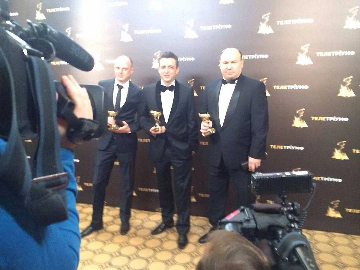 Виктор Вацко, Александр Денисов и Виктор Леоненко со своими статуетками на "Телетриумфе" / фото из соцсетей