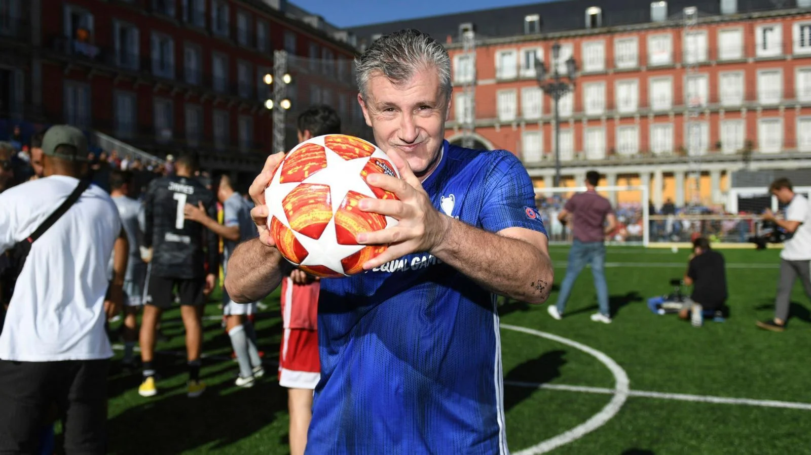 13:20. Тем временем в Мадриде проходит фестиваль чемпионов, участие в котором принимают известные в прошлом футболисты. Узнаете этого господина?