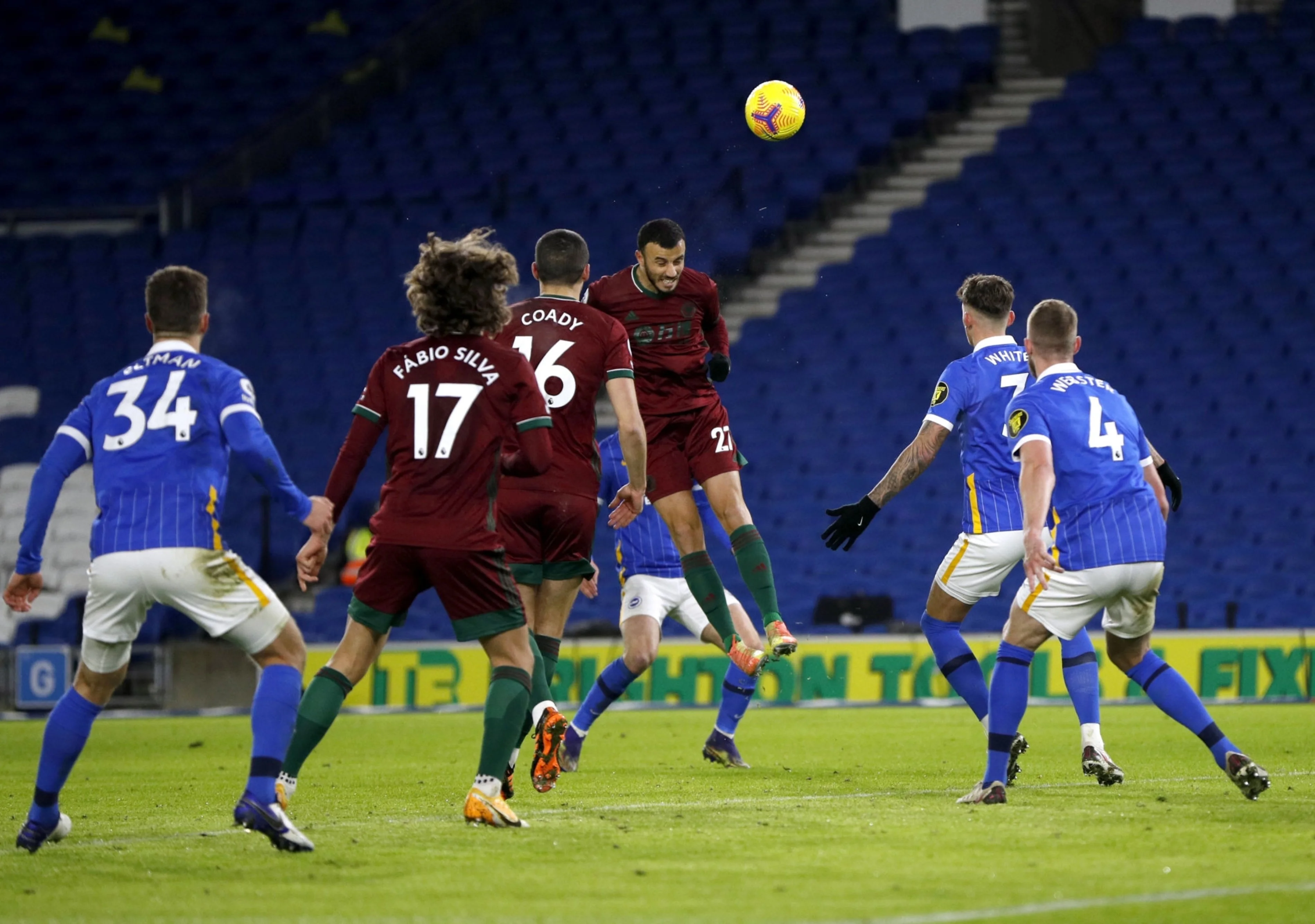 Вулверхэмптон приехал в гости к Брайтону. Хозяева открыли счет на 13-й минуте – Троссар прострелил в штрафную, а Конноли замкнул. За несколько минут "волки" ответили голом Саисса, который головой замкнул навес в штрафную от Семеду. На 34-й Нету с дальней дистанции пробивал по воротам – голкиперу удалось отбить удар, но мяч попал в Бьорна и залетел в сетку – 1:2. Под занавес тайма рефери назначил одиннадцатиметровый в ворота "чаек", который без особых проблем реализовал Невеш – голкиперу не удалось угадать направление удара.