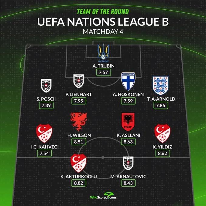 Символическая сборная 4-го тура Лиги наций в дивизионе В выглядит следующим образом:
