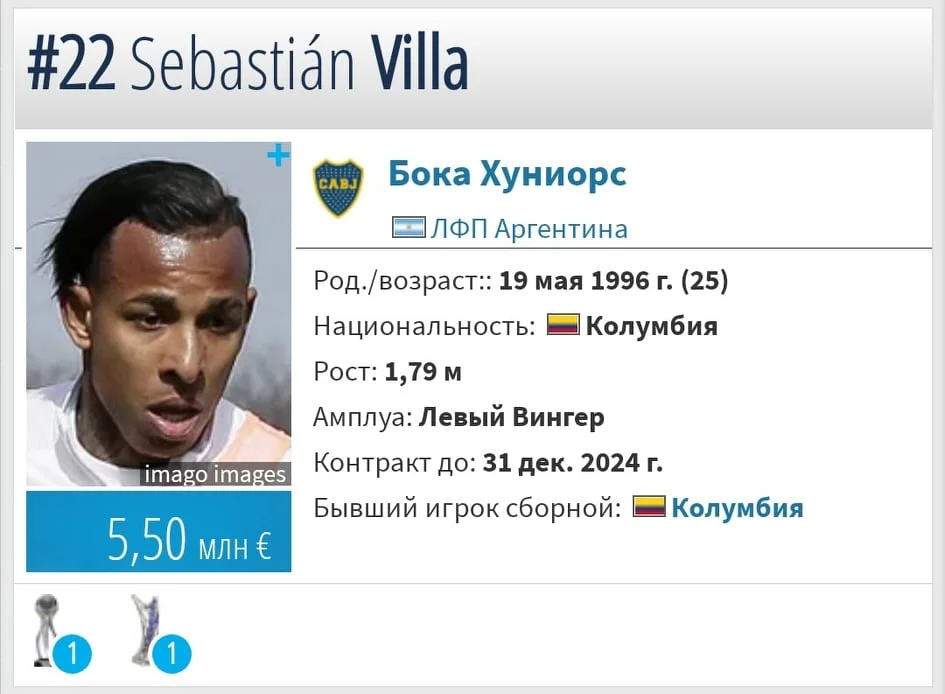 Специализированный портал Transfermarkt оценивает колумбийца в 5,5 млн. евро. В нынешнем сезоне он провел за Боку 21 матч и отличился 7 мячами. Сумма компенсации за расторжение контракта составляет 40 миллионов долларов. Добавим, что трансферами "бостерос" занимается легендарный Хуан Роман Рикельме – второй вице-президент клуба, фактически выполняющий функции спортивного директора.