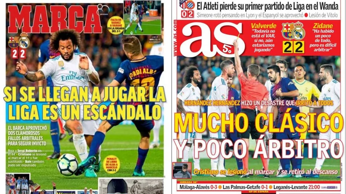Каталонские СМИ после Эль Классико писали о героическом подвиге Барселоны и видели судейские ошибки несколько в другом ракурсе.