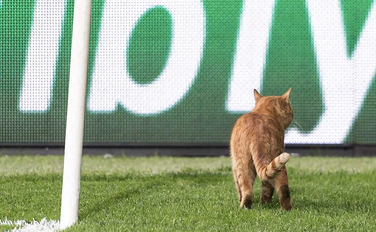 Во время матча Бешикташ – Бавария на поле Водафон Арены в Стамбуле выбежал кот.