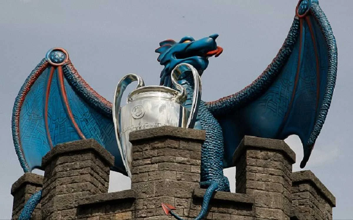Дракон в Кардиффе оберегает кубок Лиги чемпионов / getty images