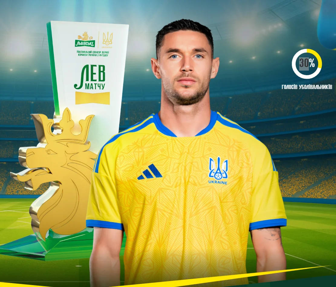 Заверш. Роман Яремчук был признан "Львом матча" – форвард сборной Украины набрал 30% голосов респондентов, сообщает пресс-служба УАФ.
