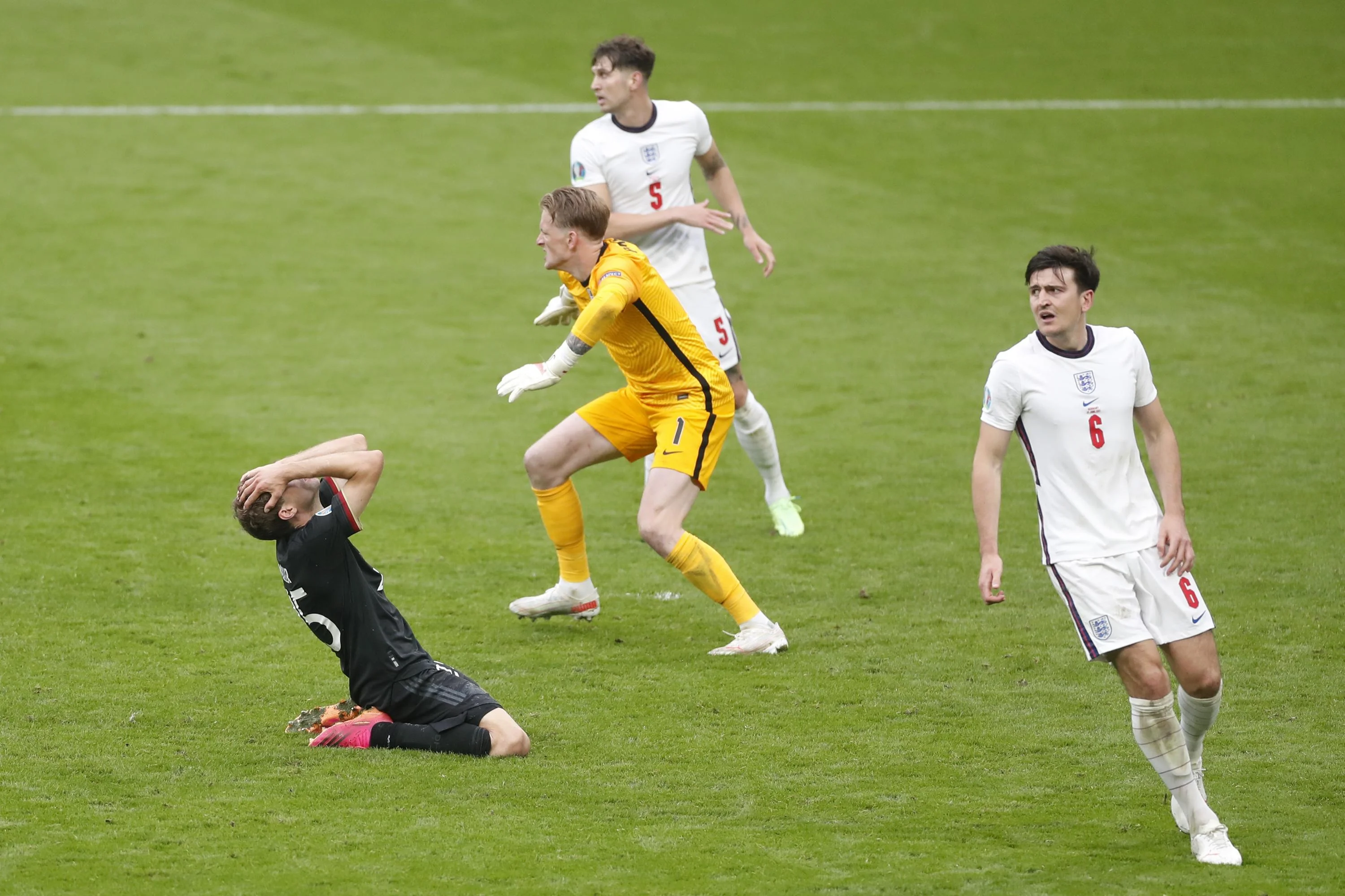 В обороне главным достоинством Англии является умение нивелировать ошибки. "Три льва" имеют идентичную статистику по доле ударов по воротам, которые произошли после потерь (54%), но острота выстрелов в створ минимальная – по воротам Пикфорда наносят наименее острые выстрелы на этом Евро (0.10 PSxG). При аналогичном с Украиной среднем количестве потерь мяча (81,6) островитяне допустили почти вдвое меньше ударов по собственным воротам, не пропустив ни одного гола за четыре матча.