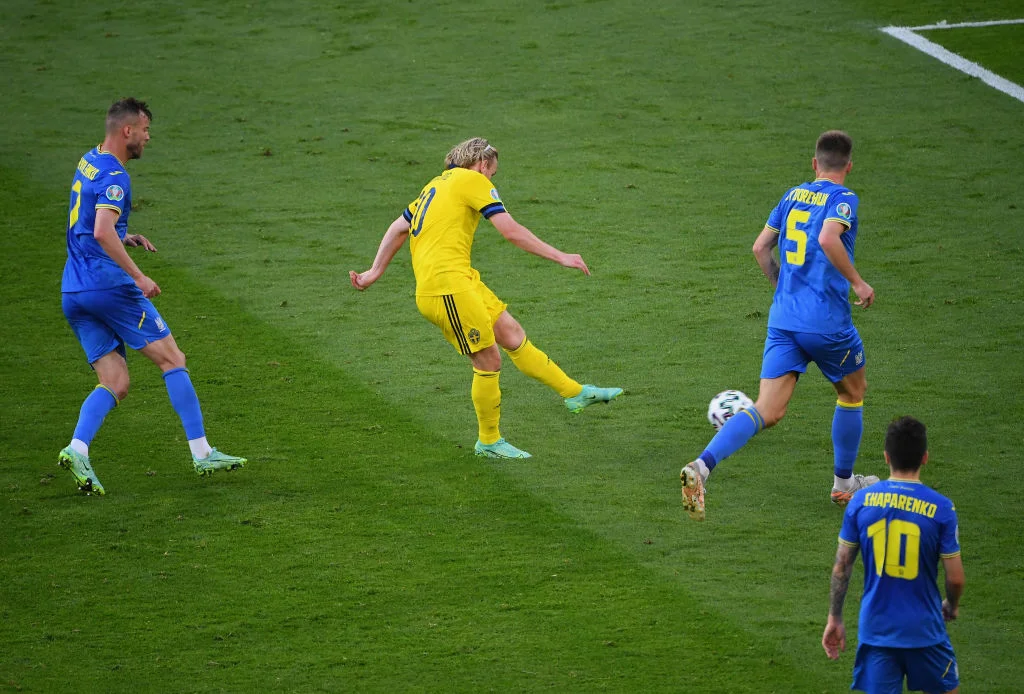В принципе, идея нашего тренерского штаба сработала. Швеция действительно попыталась накрыть Украину несвойственным для себя интенсивным прессингом, однако численный перевес на последней трети спасал Бущана от проблем. При этом скандинавы проиграли всю борьбу, а их средняя острота ударов составила всего 0,062 xG – это очень скромно (хотя и у нас всего 0,074 xG). В целом, атаку шведов удалось свести к индивидуальным перформансам (в первую очередь, речь о Форсберге), в то время как подопечные Андрея Шевченко реализовали собственные сильные стороны – продвижение мяча через Матвиенко, фланговые розыгрыши и открывания на дальней штанге. Под конец встречи сработала и ставка на кроссы.
