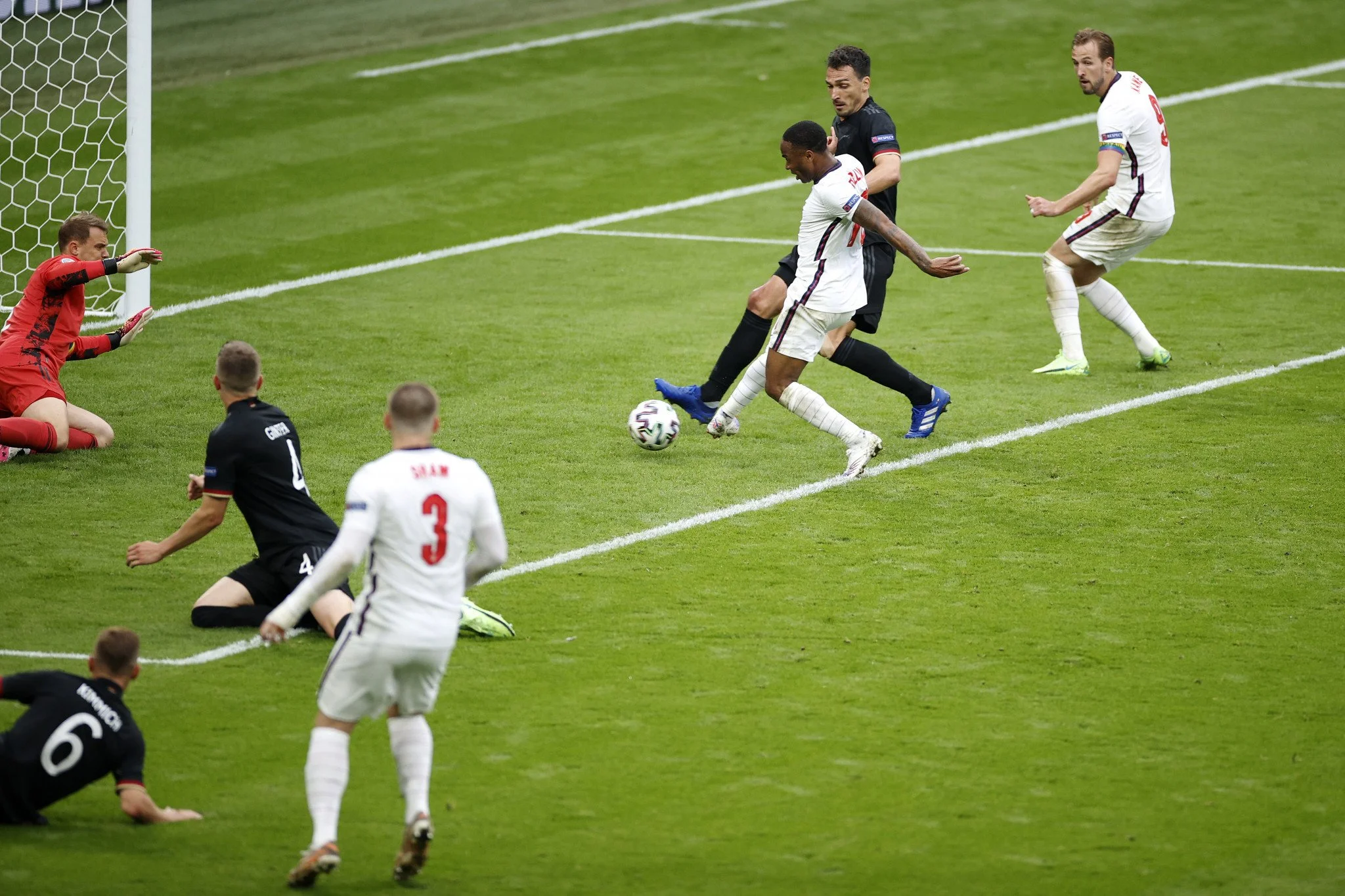 Англия: Пикфорд – Уокер, Стоунз, Магуайр, Шоу – Хендерсон, Райс – Сака, Маунт, Стерлинг – Кейн