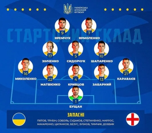 Шевченко после Швеции меняет только Степаненко, который, очевидно, не выдерживает провести пару матчей за несколько дней, на Миколенко. Соответственно Зинченко возвращается в середину поля. Саутгейт сравнению с матчем 1/8 финала делает еще больше изменений. Англия переходит на схему 4-3-3, а Маунт и Санчо меняют Трипьера и Сака. Отметим и неожиданное отсутствие Малиновского даже в запасе.