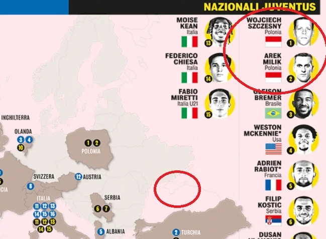 Первый конфуз – польские легионеры Юве. GDS "выписала" вызов нападающему Аркадиушу Милику, хотя на самом деле он его не получил. Возможно, автор материала Себастьяно Вернацца имел в виду сборную Индонезии, флаг которой он ошибочно разместил вместо Польши.