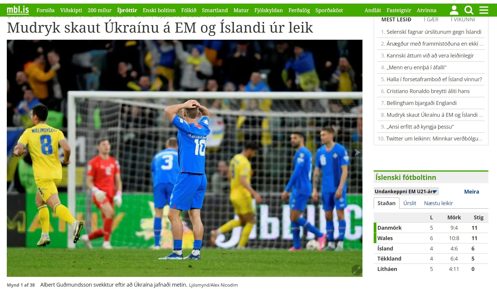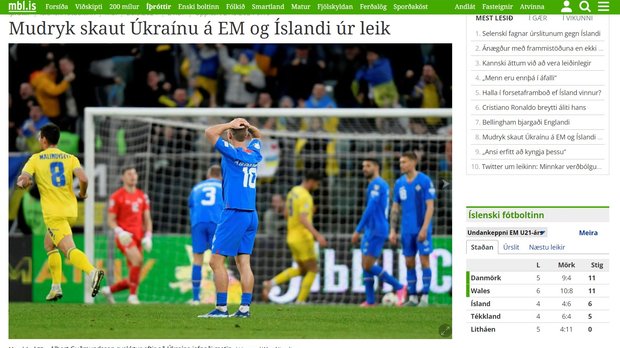 Наш огляд почнемо із заяви Федерації футболу Ісландії: "Прикра поразка від України. Мрія про чемпіонат Європи не збулася, коли наша збірна програла Україні з рахунком 2:1. Альберт Гудмундссон забив ефектний гол. Ісландія утримувала перевагу до перерви, а коли почався другий тайм, все закінчилося. Другу половину українці почали рішуче. Віктор Циганков зрівняв рахунок, а на 84-й хвилині забив Михайло Мудрик. Таким чином, Україна цього літа буде на чемпіонаті Європи в Німеччині".