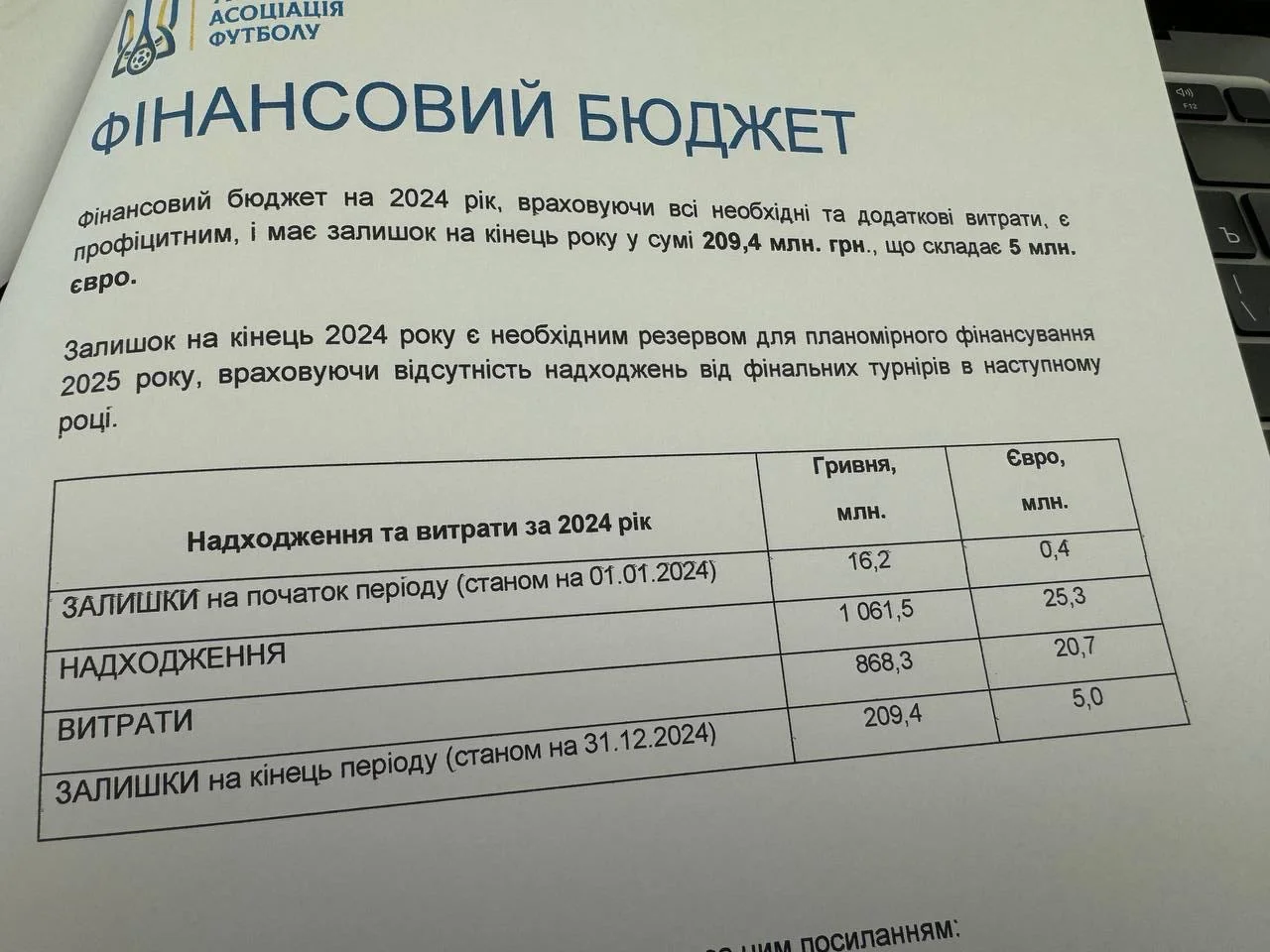 В предоставленном отчёте заявляется, что благодаря оптимизации расходов и разрешения от УЕФА и ФИФА на изменение целевого назначения определённой части средств, администрации УАФ удалось покрыть дефицит бюджета в более чем 100 млн гривен, который возник в начале года.