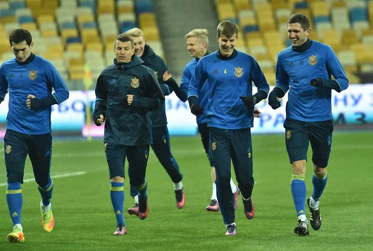 Сборная тренировалась в полном составе: на уровне со всеми в занятиях принял участие полузащитник "сине-желтых" Евгений Коноплянка, у которого накануне имел место спазм мышцы.