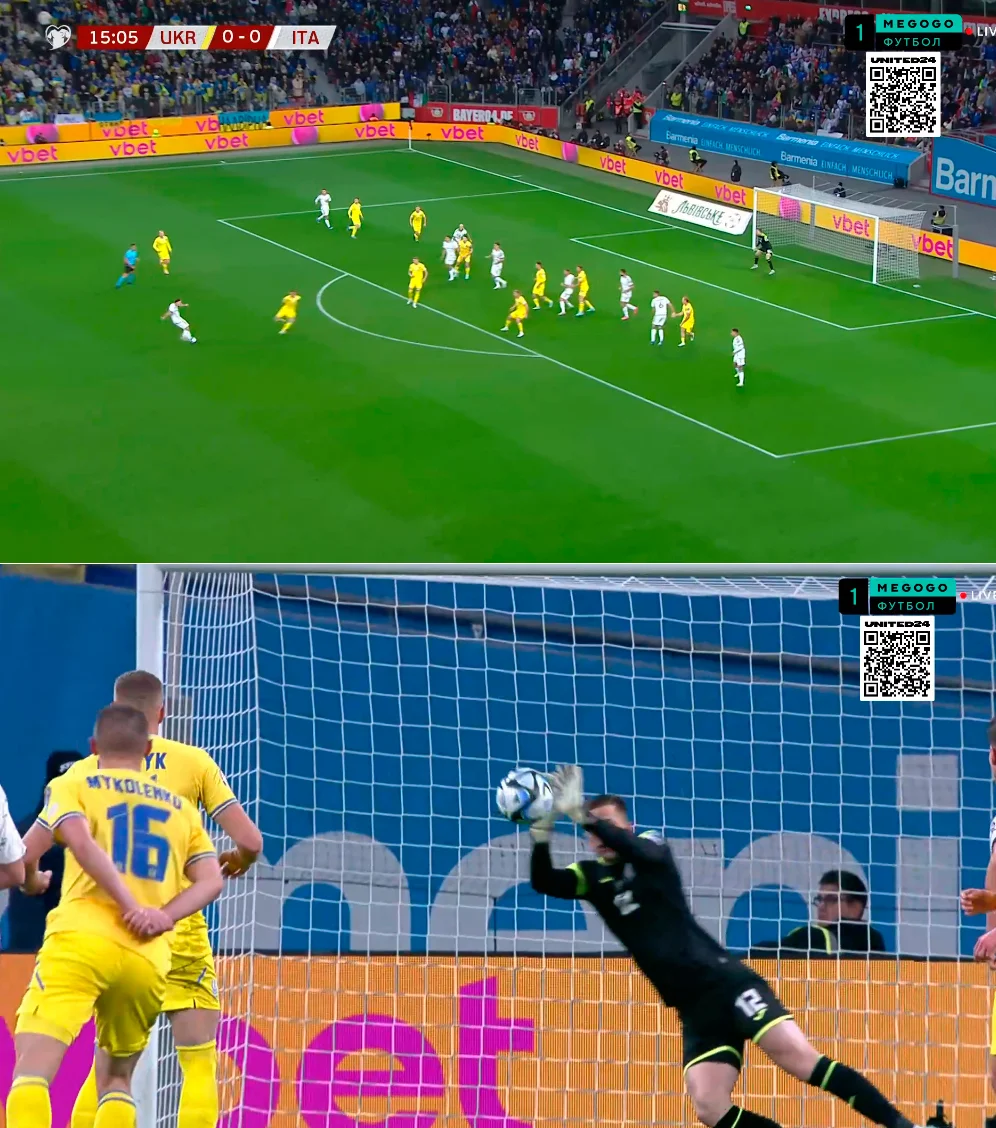 Уже на 66-й минуте нервы итальянцев вылились в ошибку Доннаруммы при перехвате вбрасывания из аута – в результате этого Мудрик пробил с близкого расстояния. Джиджи спас "Скуадру"!
