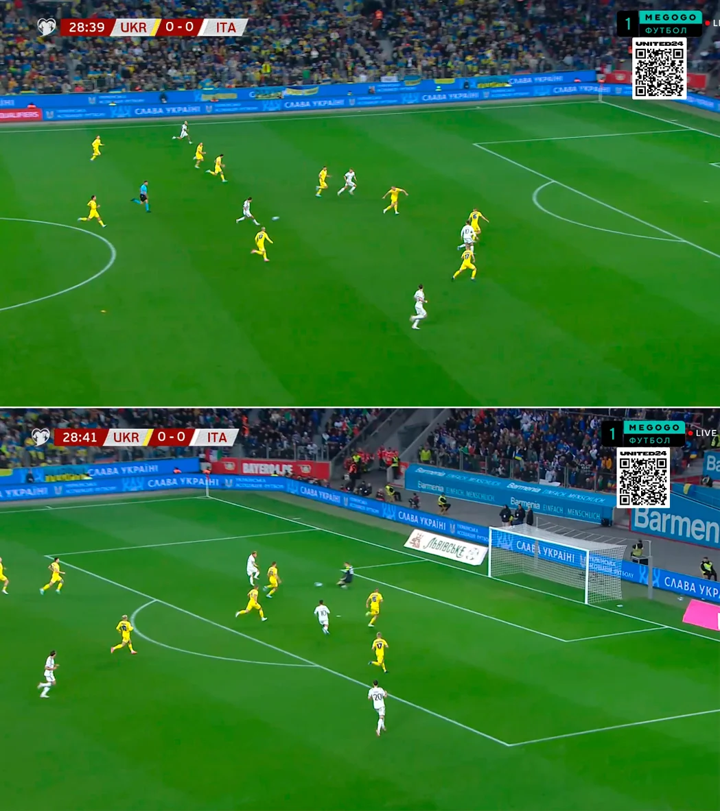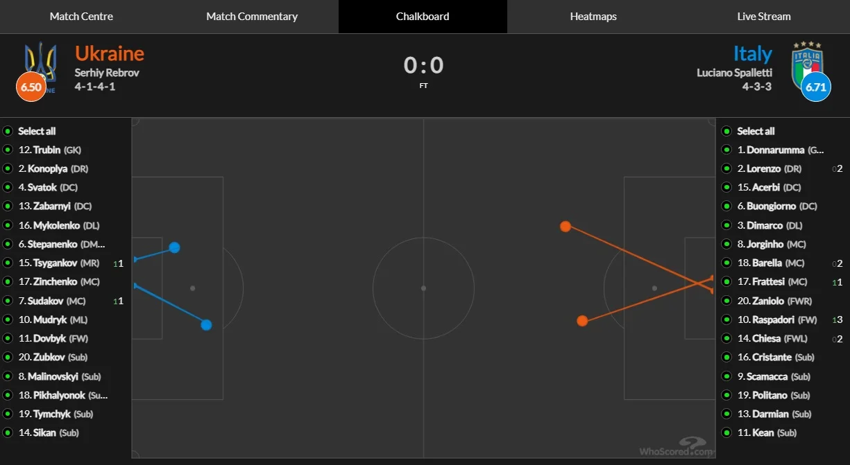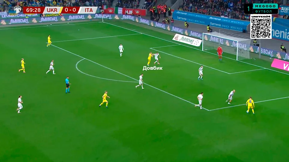 План сборной Украины начал работать сразу. Италия против компактного блока украинцев тормозила и теряла мяч, что выливалось в быстрые контратаки. Кроме того, за выносы очень качественно цеплялся Довбик. Значительно увереннее своей привычной версии работал и Мудрик.