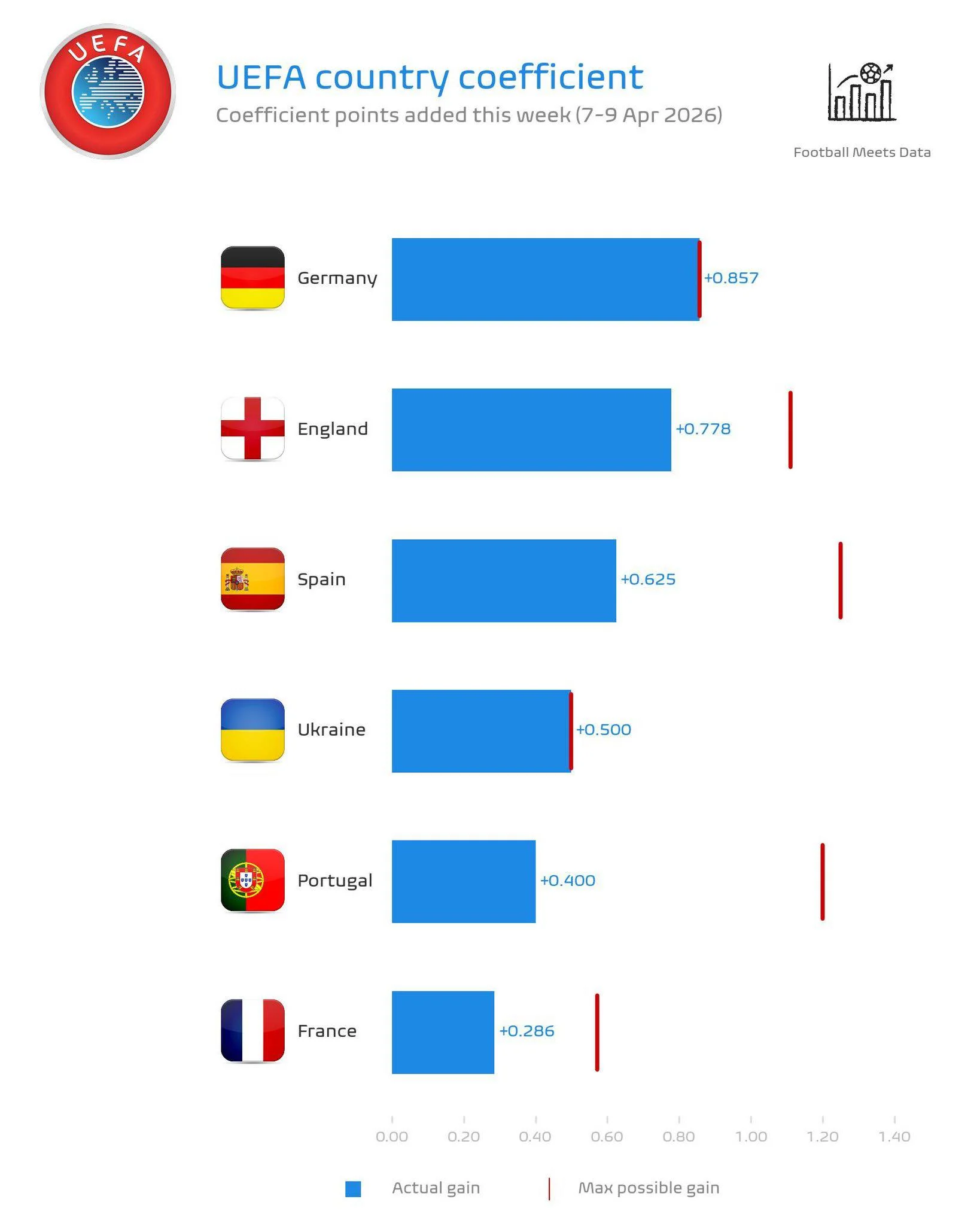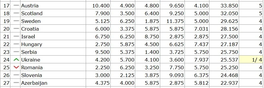 Стоит добавить, что Украина еще и оказалась в топе стран, которые больше всего добавили очков в таблице коэффициентов – выше только такие гранды как Германия, Англия и Испания.