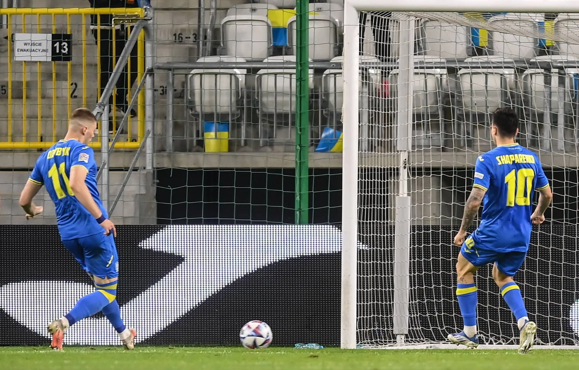 Украина в этот период имела несколько врываний в штрафную без логического завершения. Лучший эпизод наши футболисты упустили на 63-й минуте, когда Миколенко обыгрался с Мудриком на левом краю и прострелил вдоль вратарской. К сожалению, на замыкание никто не пришел!