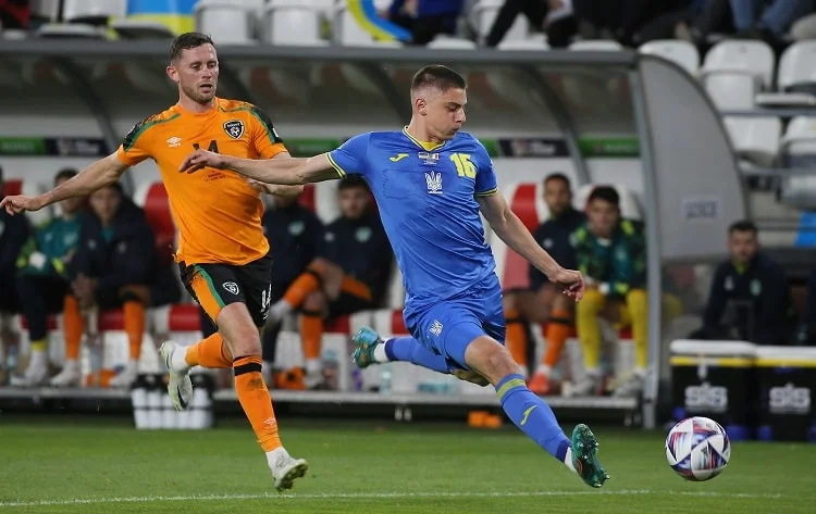 Уже через несколько минут после стартового свистка стало заметно, что матч пошел не совсем так, как хотелось бы. Ирландия сразу же навязала борьбу и начала реализовывать свои козыри – высокий прессинг, верховые дуэли и переходные фазы. Уже на 2-й минуте Найт пробивал головой по воротам, а после подачи с углового сразу два футболиста гостей чуть не затолкали Ризныка в ворота. Украина, в свою очередь, пыталась установить контроль над мячом и территорией – впрочем, продвижение выглядело слишком медленным, а решения на чужой трети поля были тривиальными.